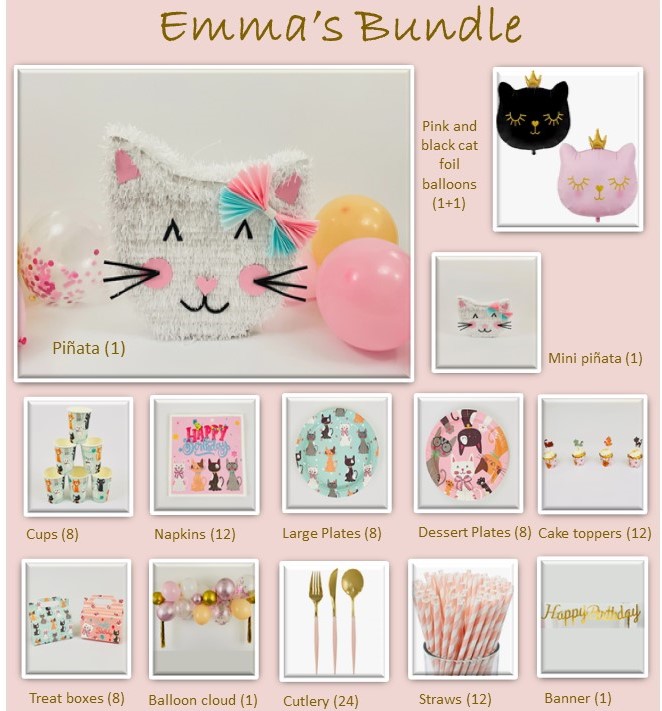 The Kitty Cat Bundle for cats themed party. Basic Purrfect party bundle includes: